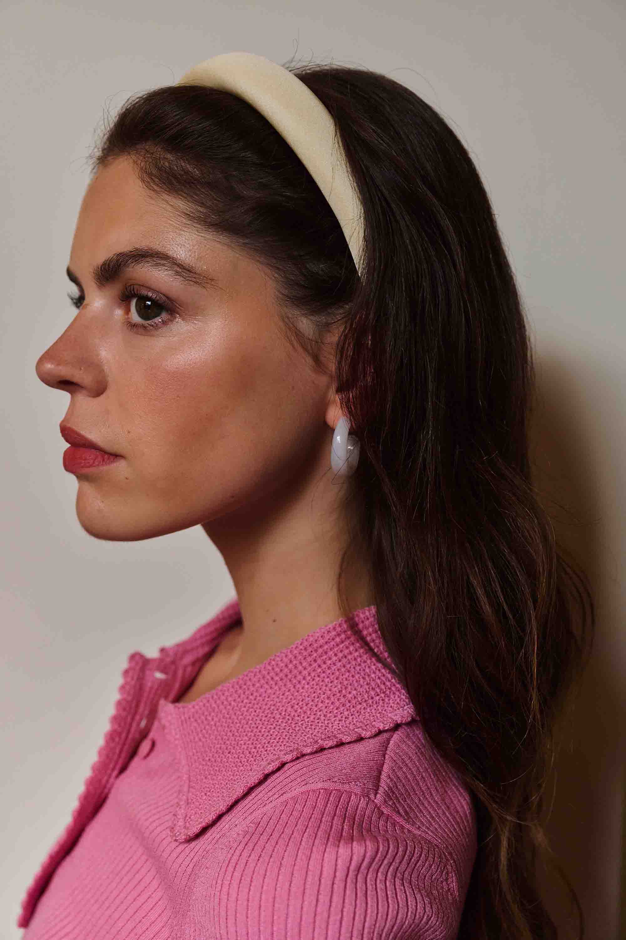 The headband has a soft satin look. A fun eye-catcher to give your look an extra touch.