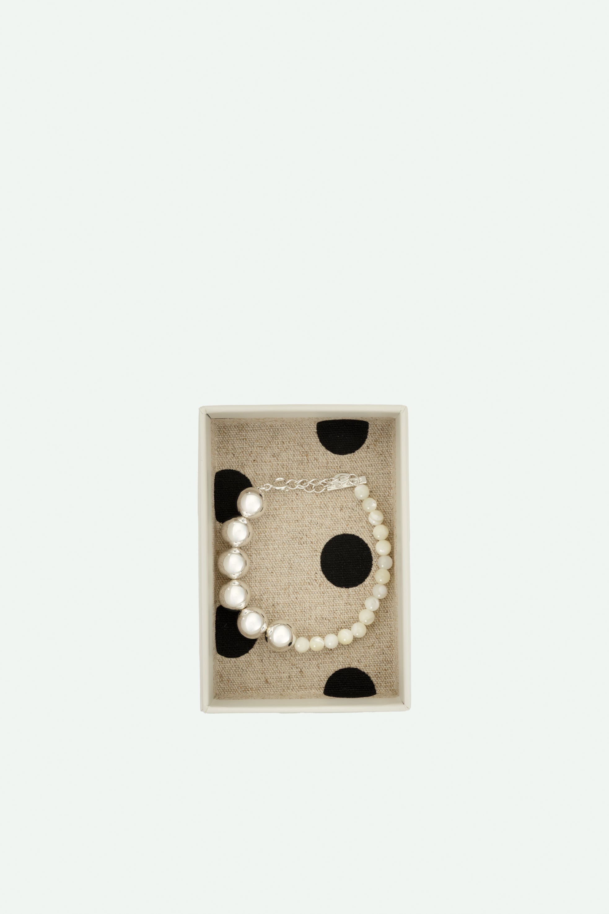 This elegant bracelet features a beautiful combination of two types of beads, each adding its own charm to the design. Together, they create an eye-catching accessory.