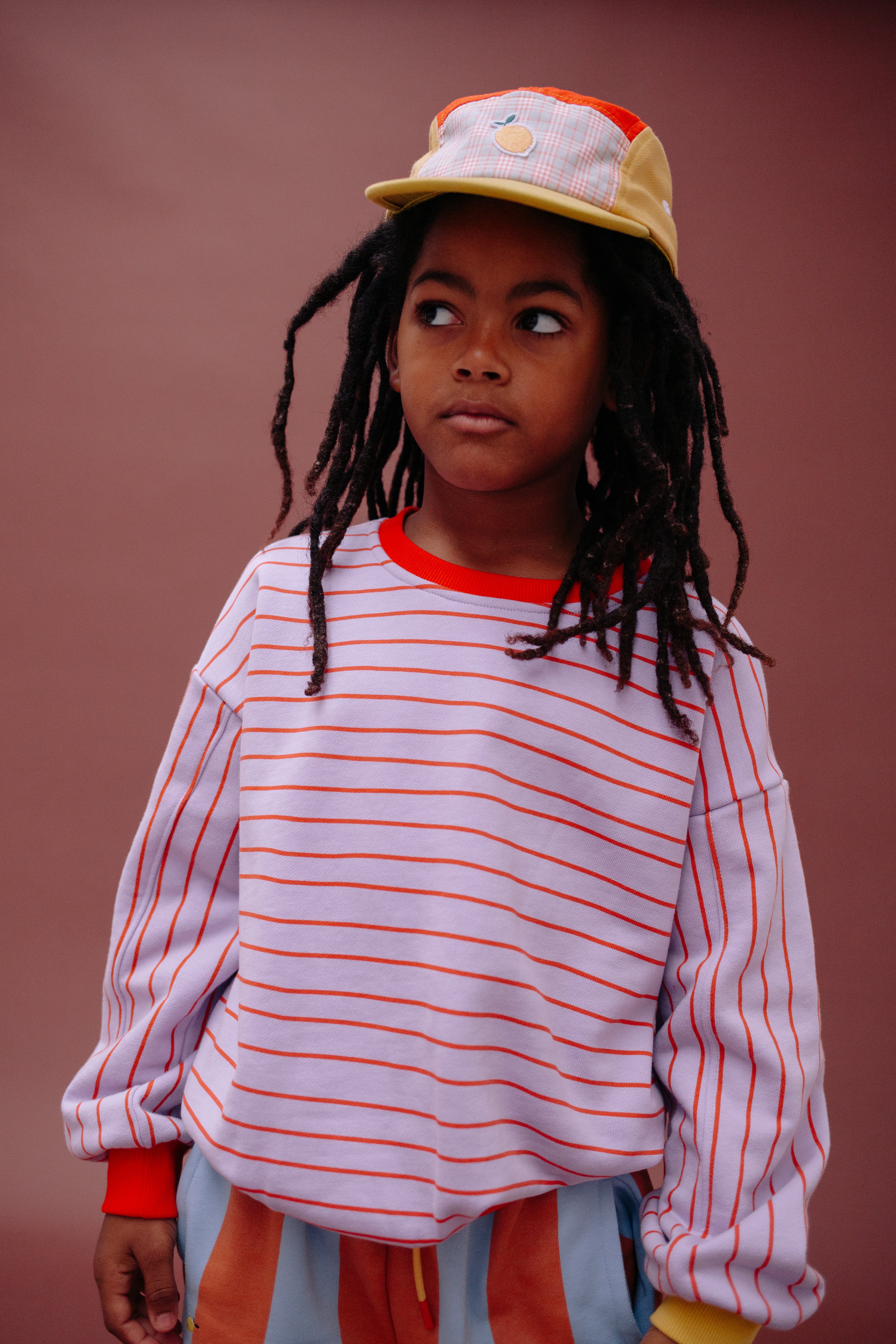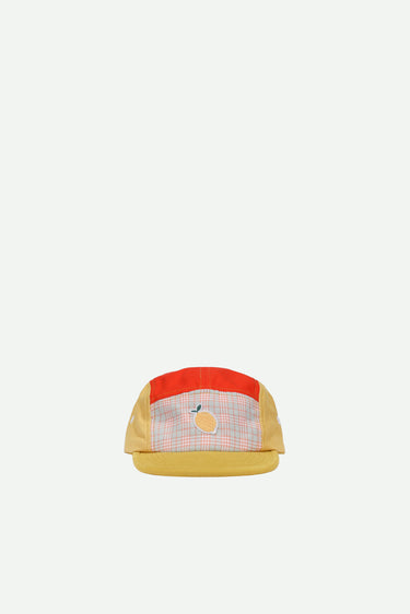 Keep the sun out of your eyes with one of our cool caps! This cap combines 3 even colors, a tartan fabric and an embroidery on the front. It is adjustable in size to fit as many kids as possible!