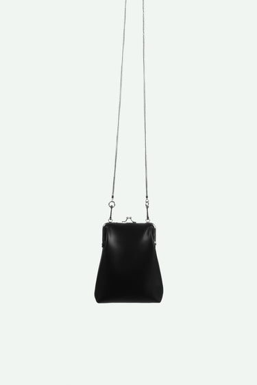 A phone wallet with a silver clasp closure. The phone wallet has one compartment and is made from linen with a polkadot printing. Every bag comes in a dust bag, to store your bag if you're not using it.