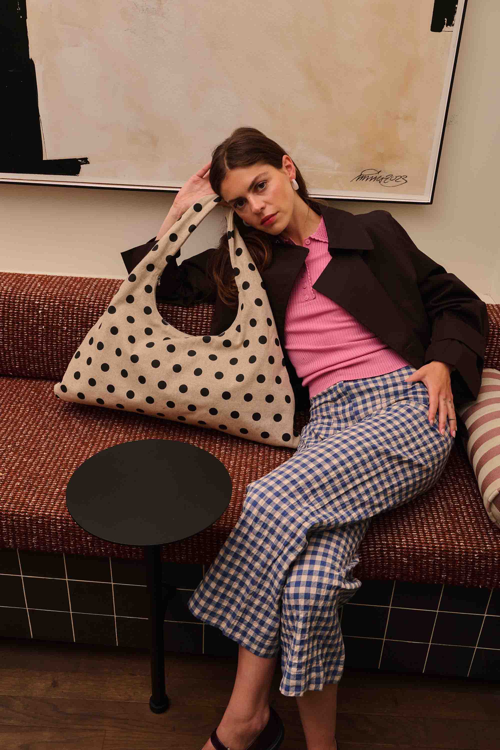 Elevate your everyday with our new Sticky Sis Shopper! Crafted from soft, natural linen with playful polkadots. Every bag comes in a dust bag, to store your bag if you're not using it.