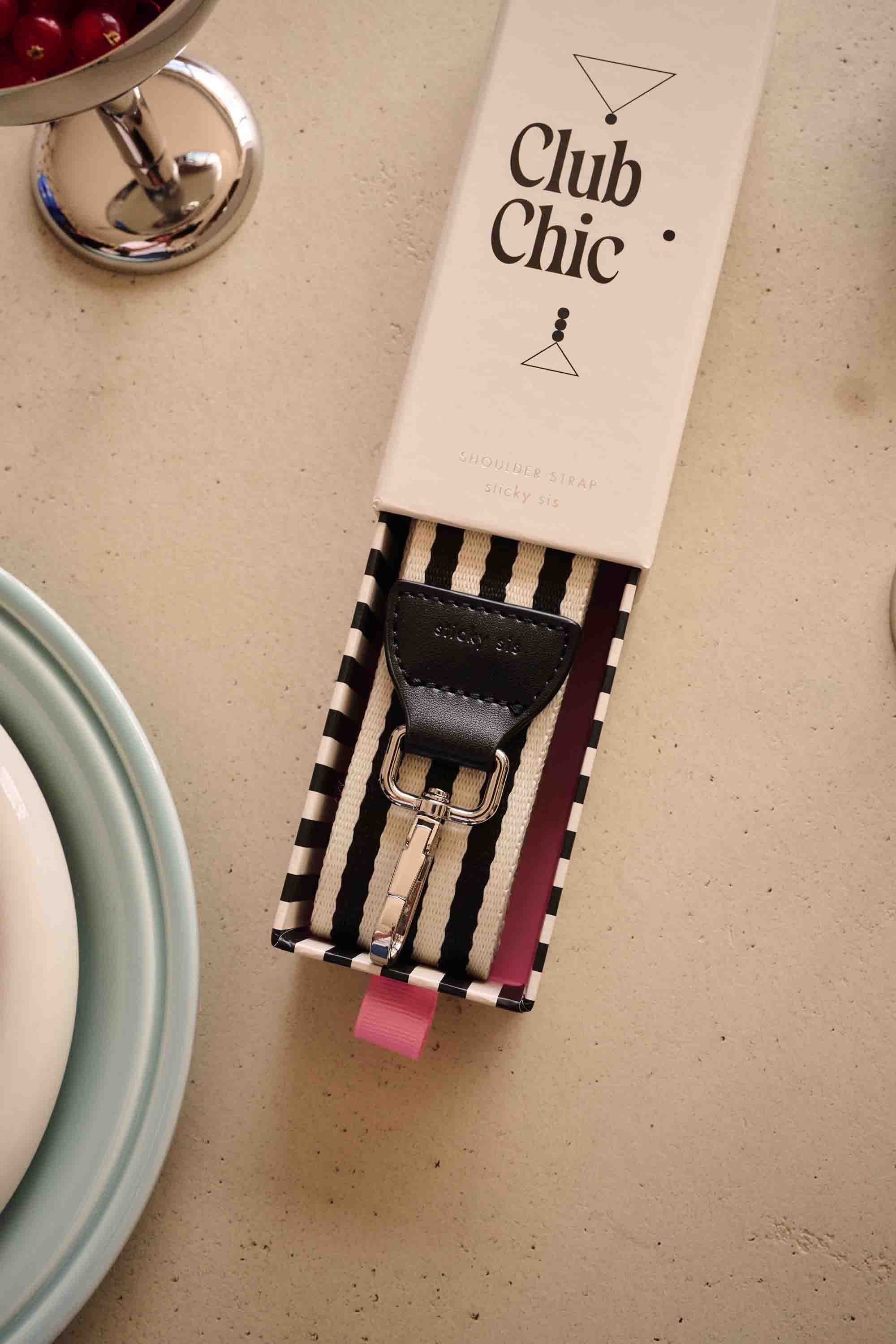 A webbing shoulder strap with a PU detail and silver buckles. The strap fits on every shoulderbag and satchel. It comes in a beautiful gift box.